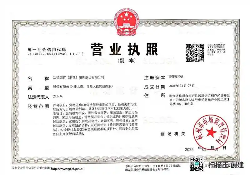 Company Name : Tingmei Super Wise (zhejiang) Clothing Co., Ltd.